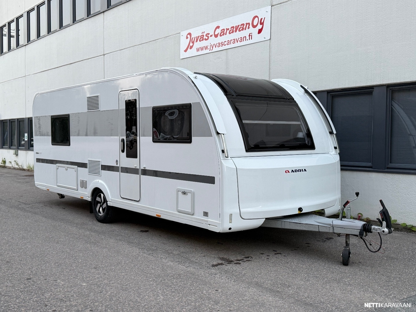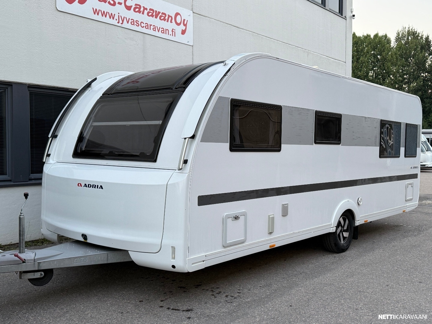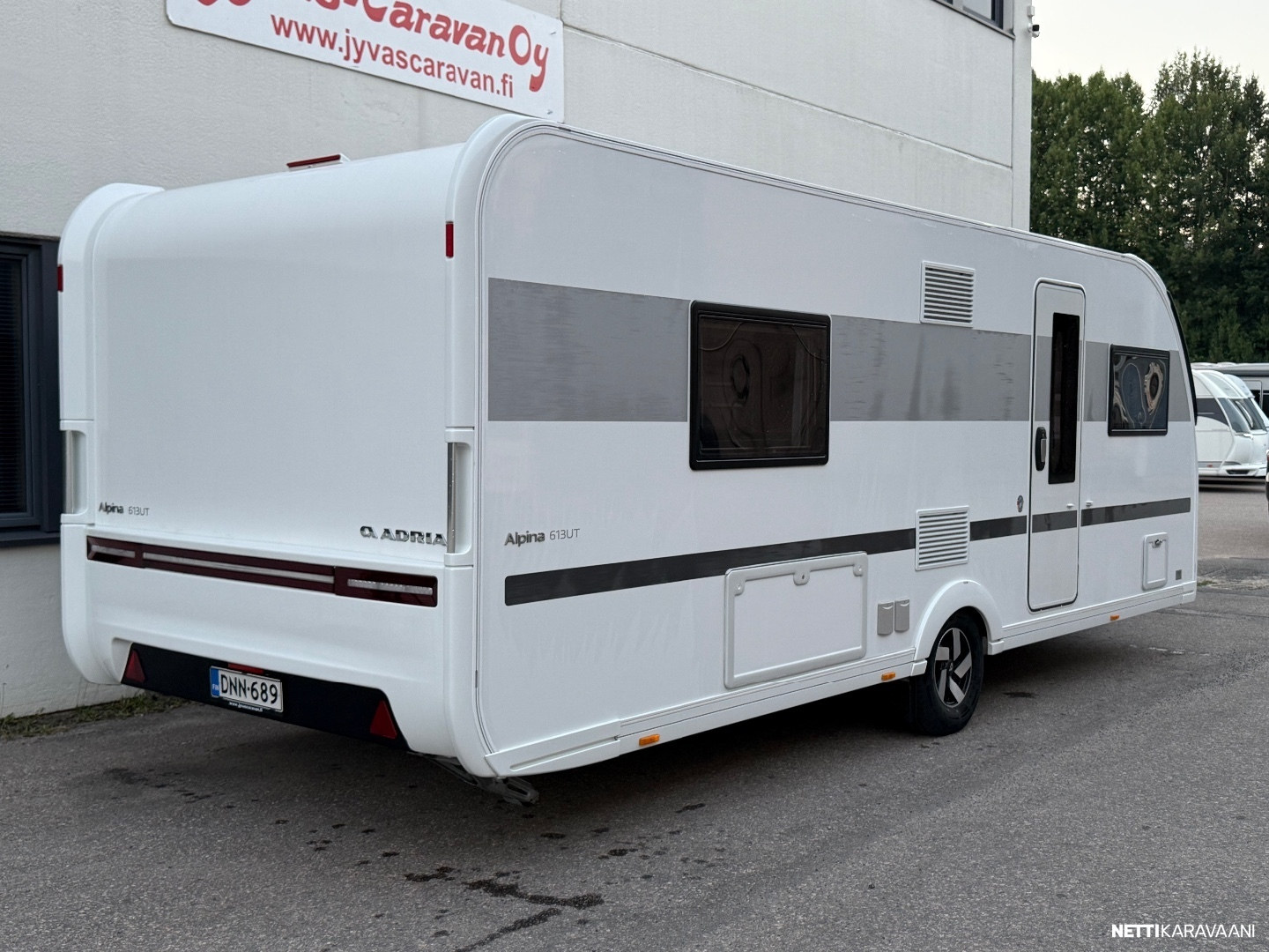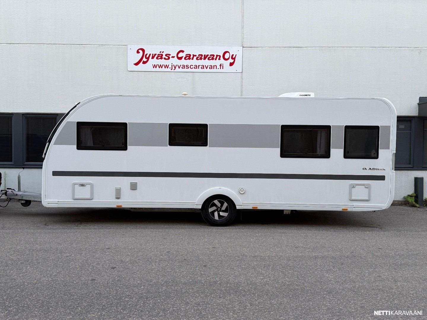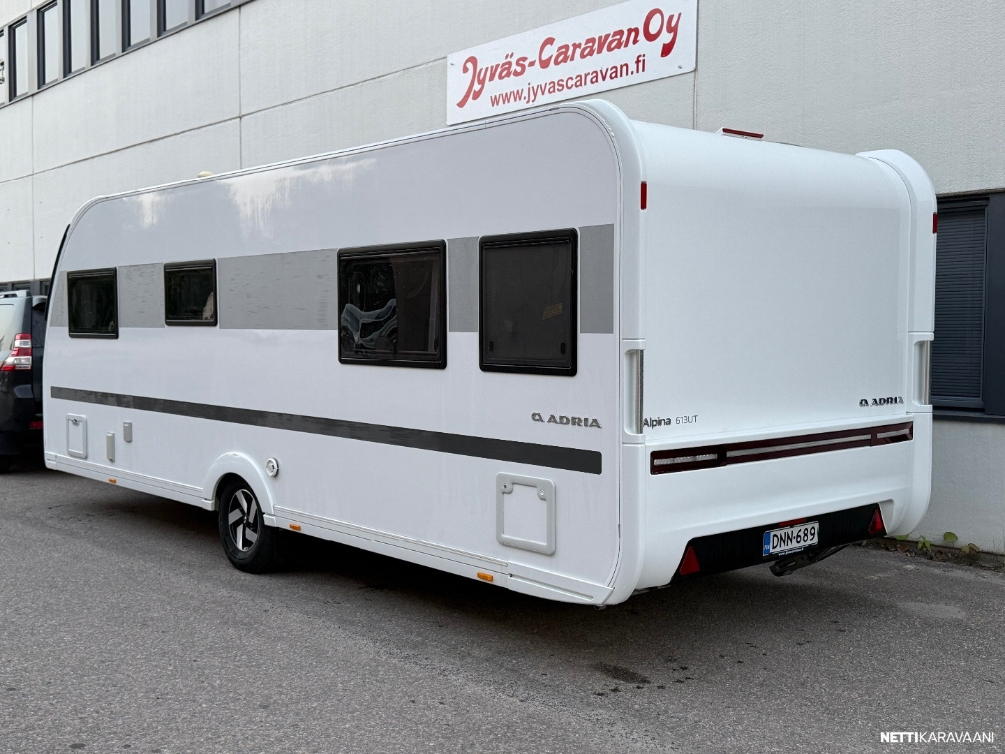 Avaralla pohjaratkaisulla varustettu Adrian ympärivuotiseen käyttöön soveltuva Alpina vähän käytettynä! Edessä tilava u-ryhmä suurella panoraamaikkunalla, keskellä iso keittiö uunilla, mikrolla ja suurella jääkaapilla. Takana tilavat erillisvuoteet sekä peräosassa koko vaunun levyinen kylpyhuoneosasto erillisellä suihkulla!