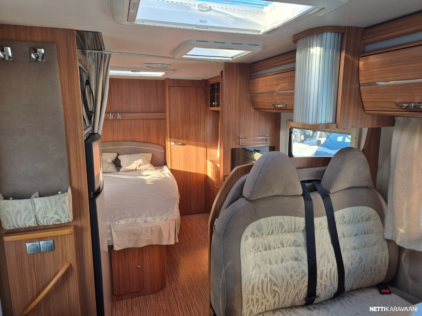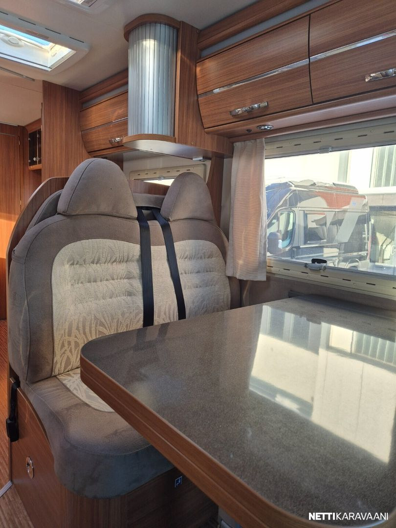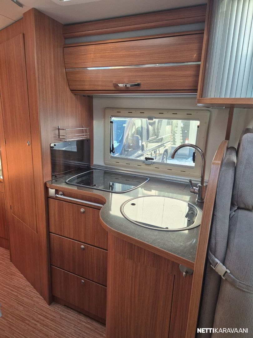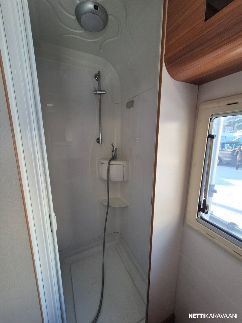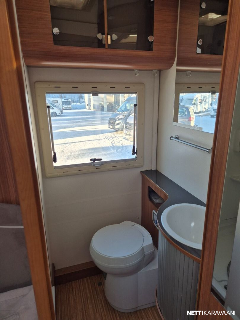 Hienokuntoinen parivuode-Adria lähes koko auton levyisellä pesuhuoneella/pukeutumistilalla