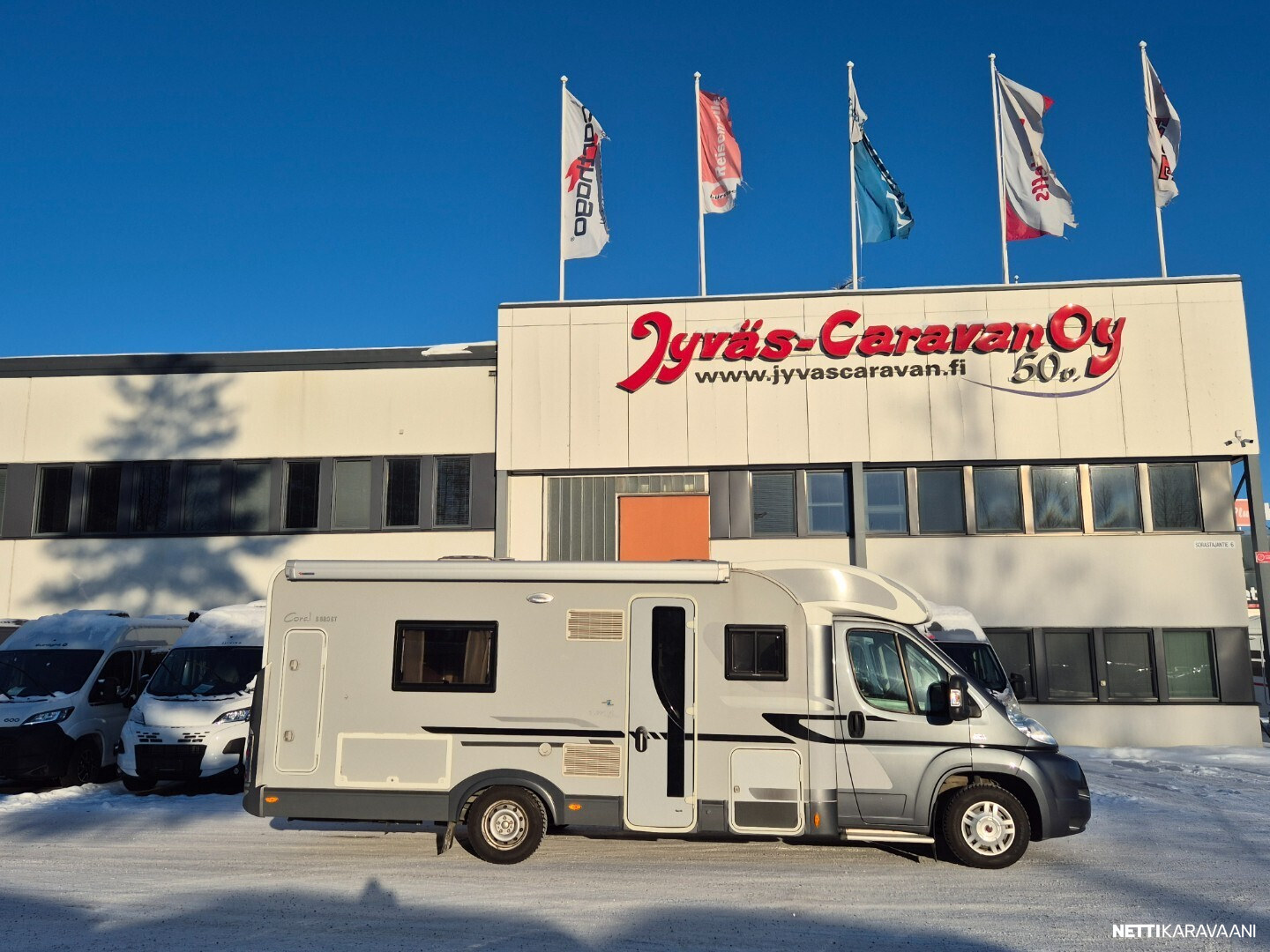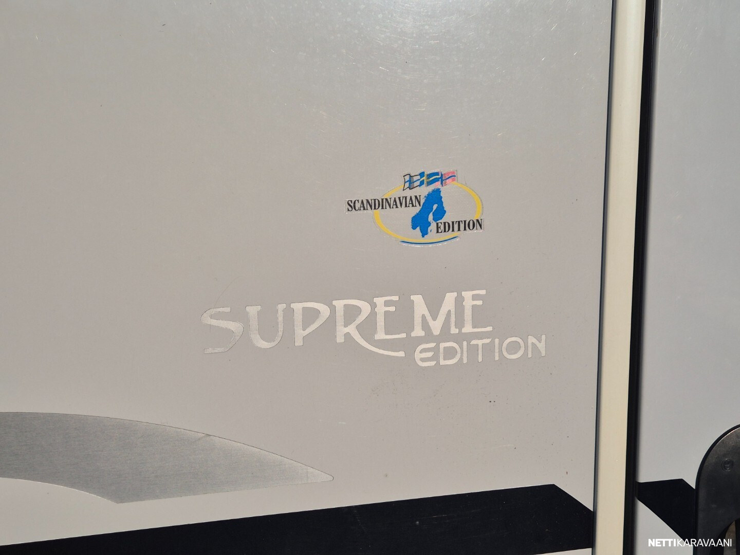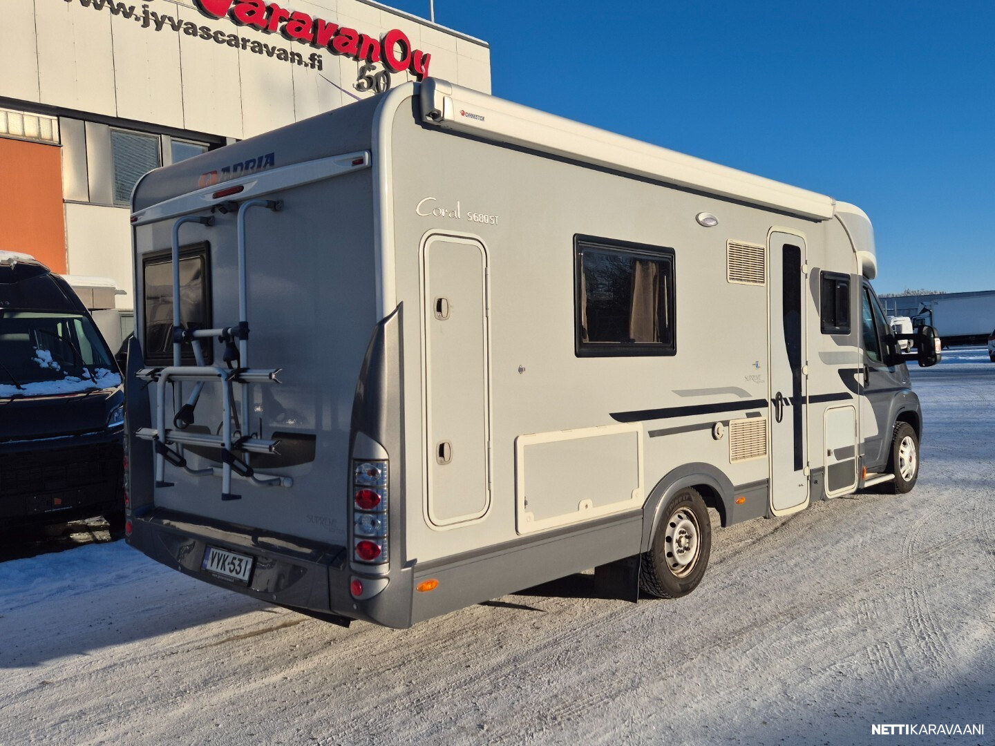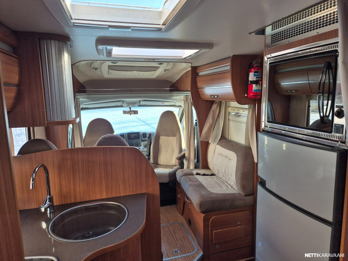 Hienokuntoinen parivuode-Adria lähes koko auton levyisellä pesuhuoneella/pukeutumistilalla