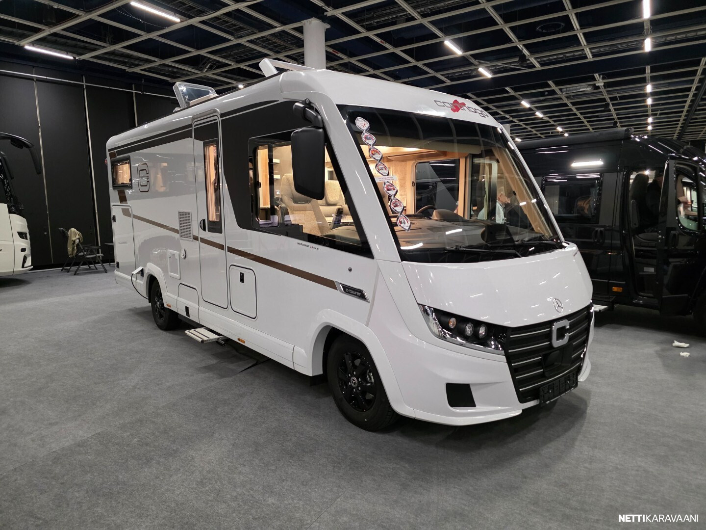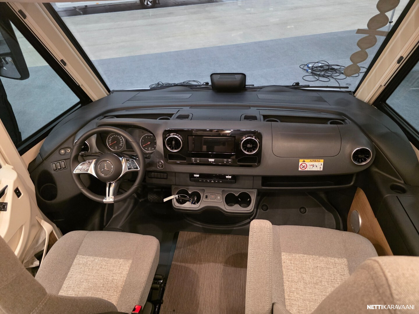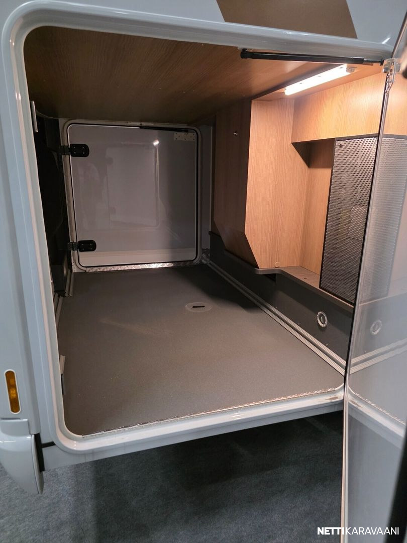 Basic-Plus paketti Mercedes-Benz (Puoliautomaattinen Tempmatic-ilmastointijärjestelmä, vakionopeudensäädin, Latausboosteri, Etuakseli, jossa on suurempi kantavuus, Mittaristo värinäytöllä, Sadetunnistin, Sähköinen seisontajarru, Mukavuuskuljettajan istuin kallistuksen ja korkeuden säädöllä, matkustajan istuin kallistuksen säädöllä, Radiovalmiuskattoantennilla ja DAB+:lla, kaiuttimilla (4 kpl) MBUX 10,2” multimediajärjestelmä, jossa navigointi ja DAB+, Liikennemerkkien tunnistus, Midi-Heki-kattoluukku LED-valoilla L-muotoisen oleskeluryhmän yläpuolella, Suuri skootterin talliovi kuljettajan puolella, XL ”premium two 2.0 korin ovi (leveys 63 cm) kaksoislukituksella, rullaverholla ja hyönteisverkolla, Litiumioniakku 90 Ah akkutietokoneella, SOG-WC:n tuuletus kattohormin kautta, USB-liitäntä yläsäilytyskaapissa takavuoteen yläpuolella)