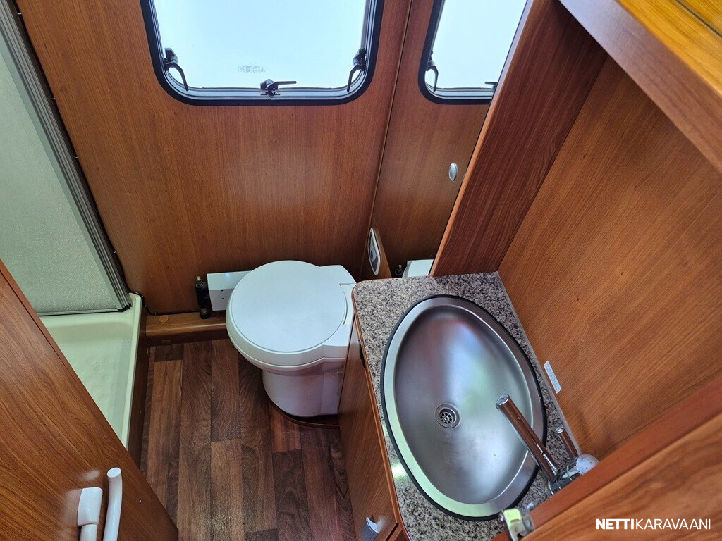 Pitkittäisellä parivuoteella ja taka-saniteettitilalla Alde lämmitteinen pariskunnan lomakoti.