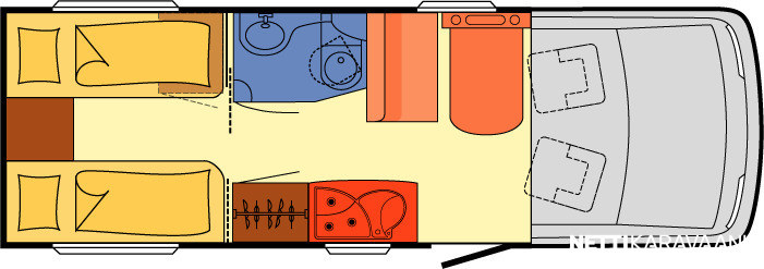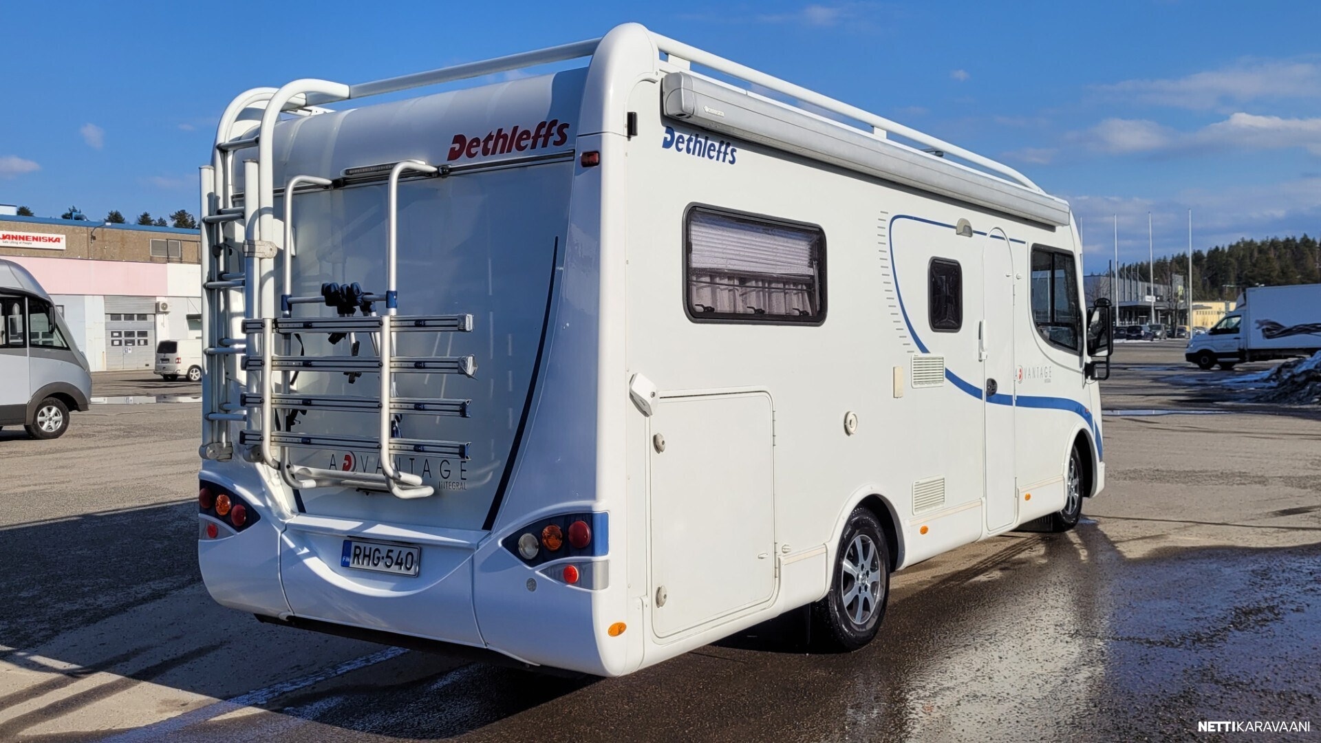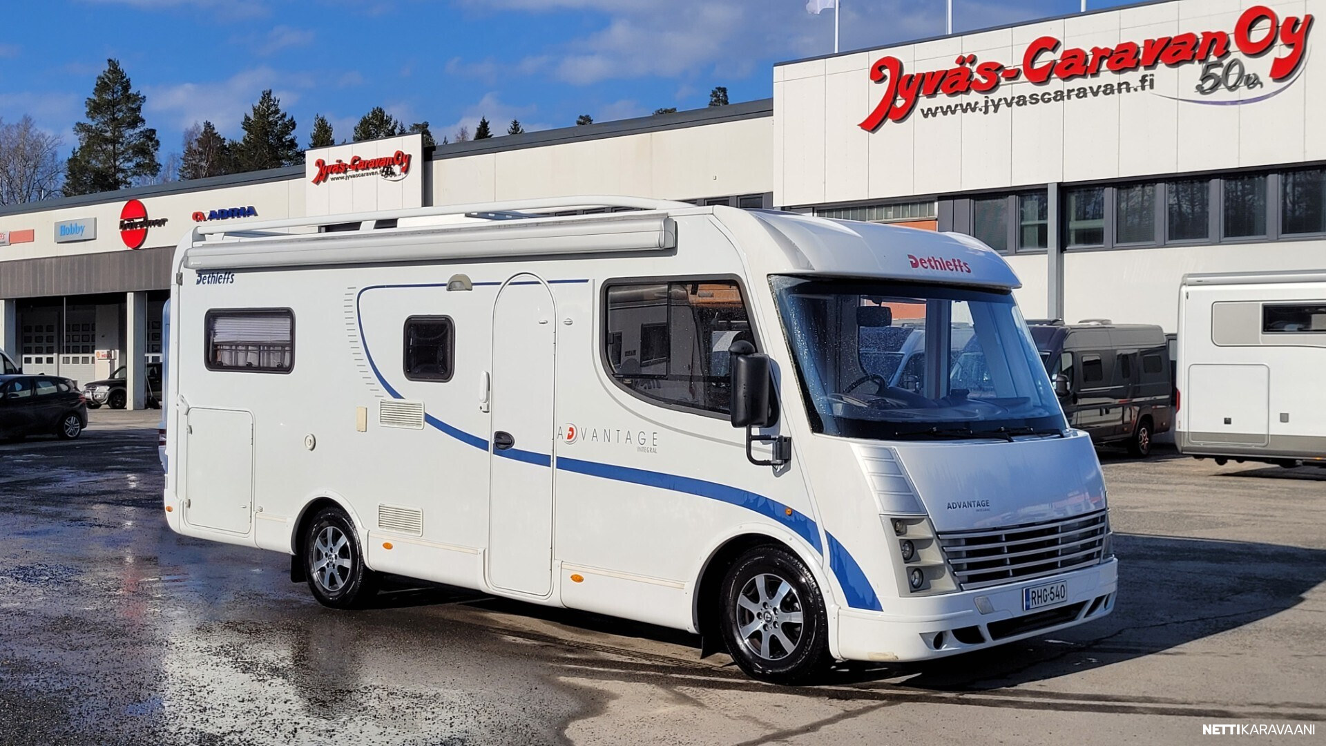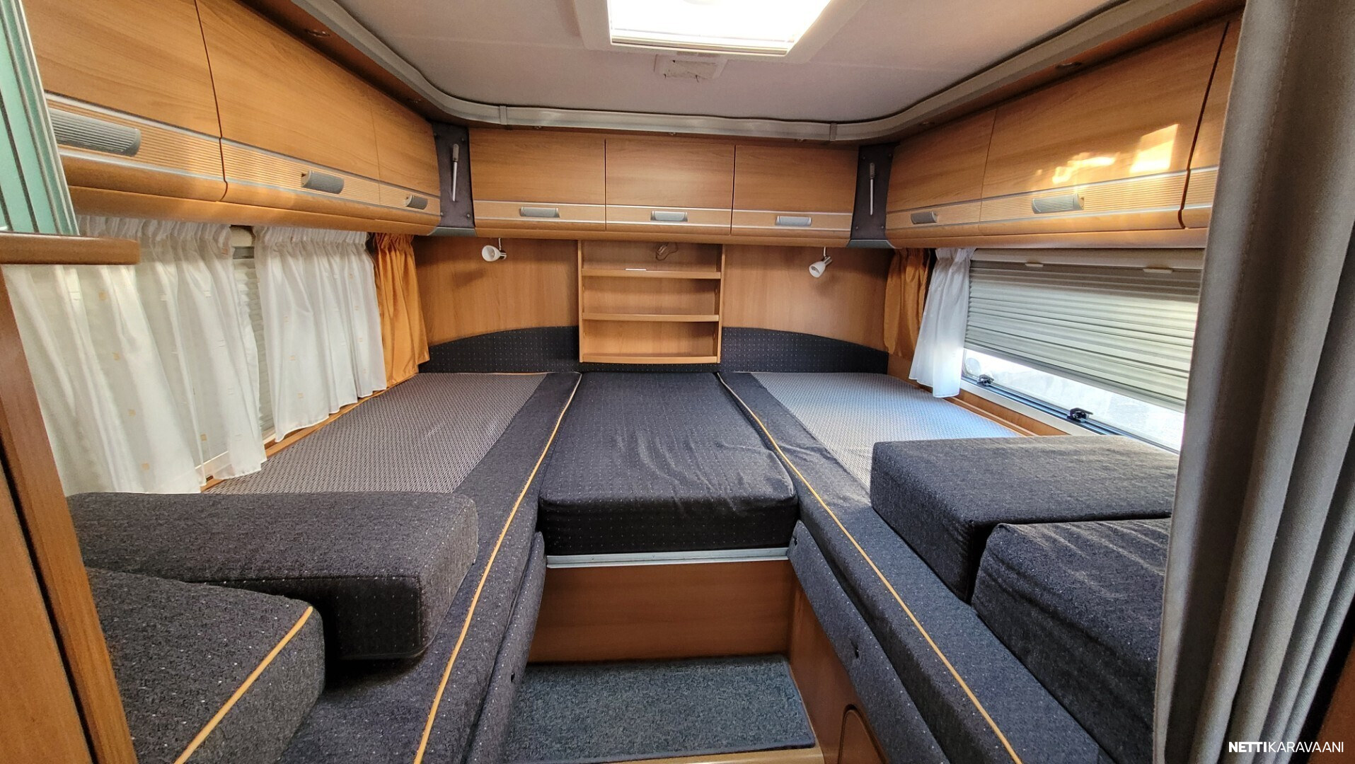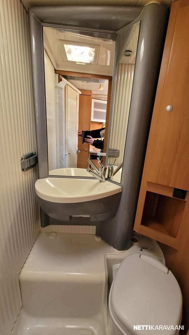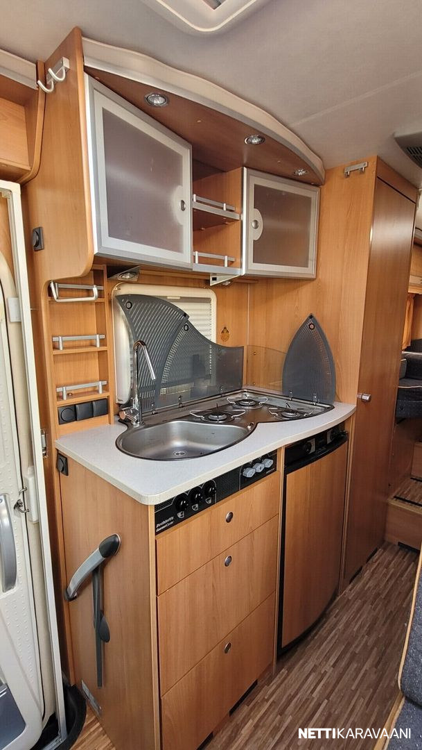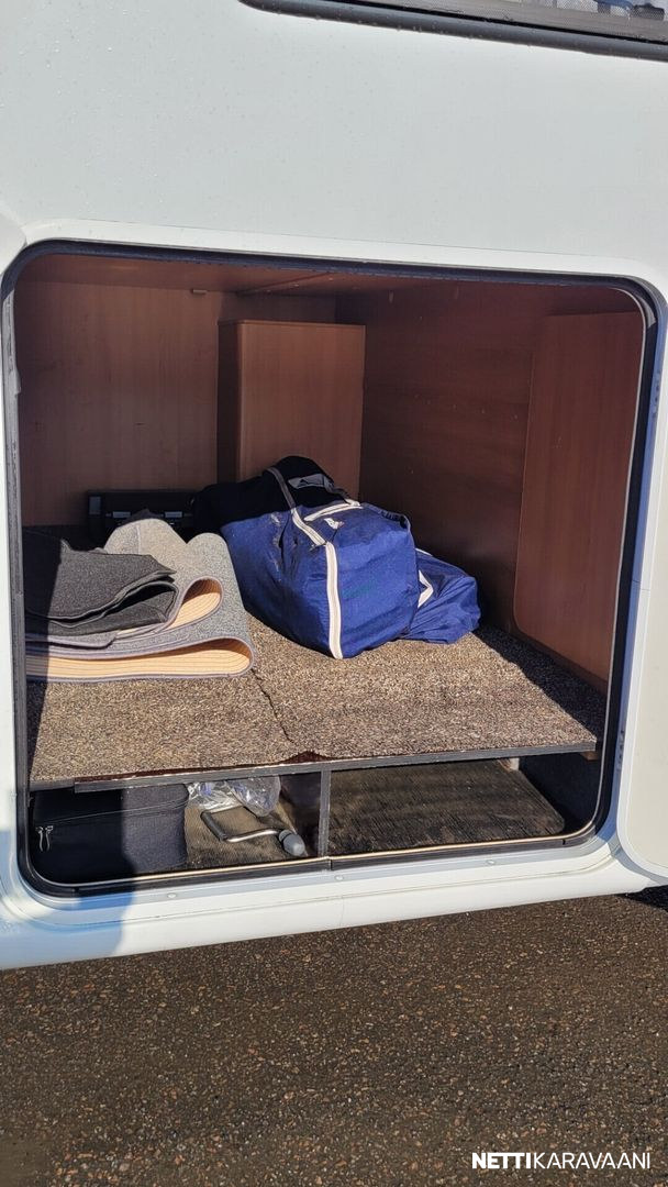 Hyvin varusteltu Dethleffsin erillisvuodeversio takatallilla, tuplailmastoinnilla ja isolla 3l moottorilla