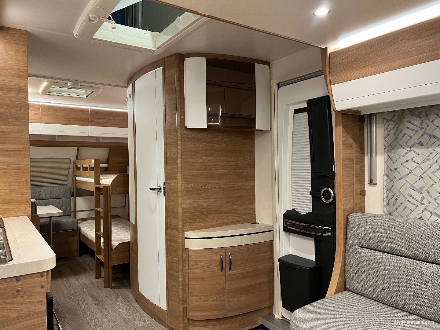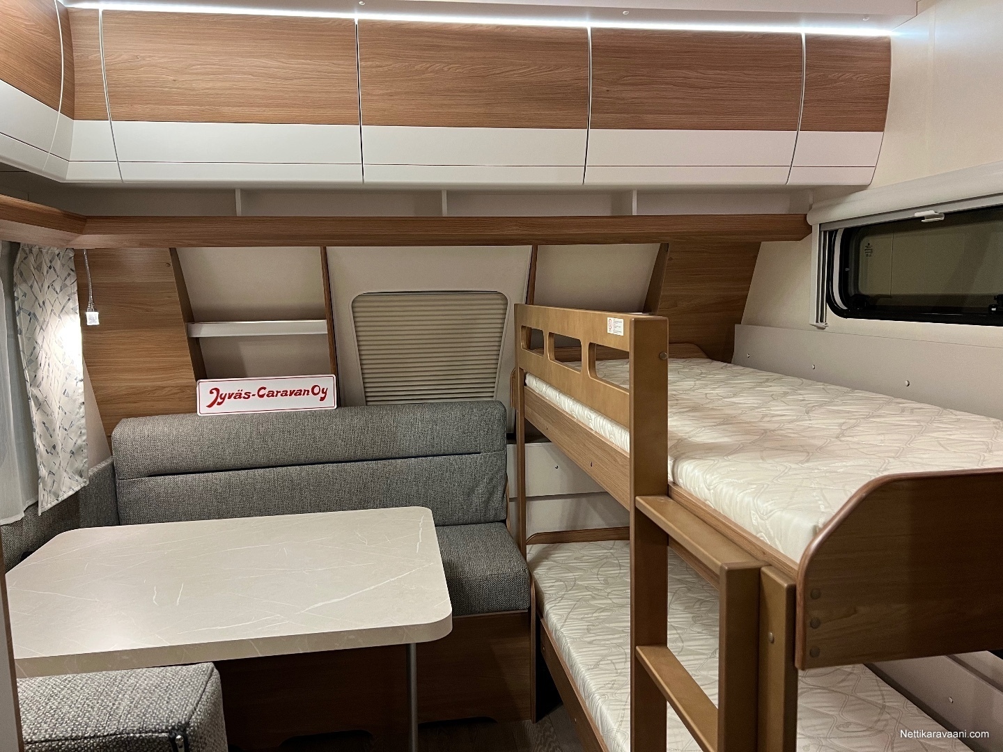 Lapsiperheen malli jossa laskuvuode sekä kerrosvuode.