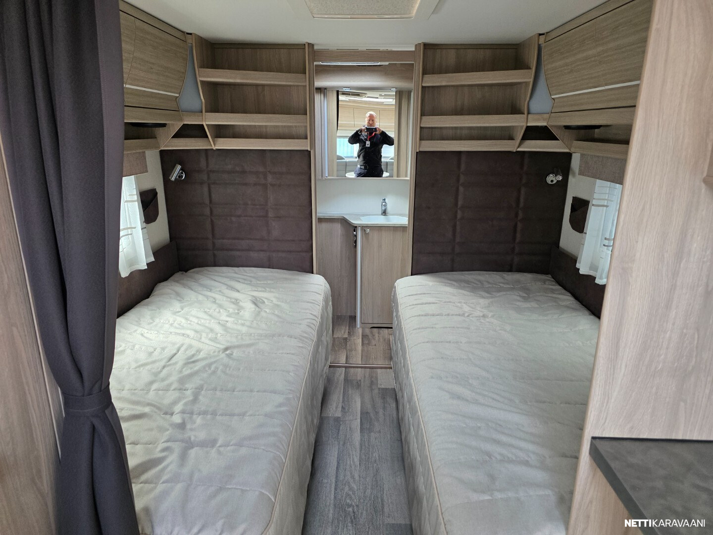 Huippukuntoinen Kabe erillisvuoteilla ja takaosan levyisellä pesuhuoneella