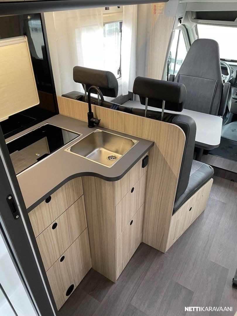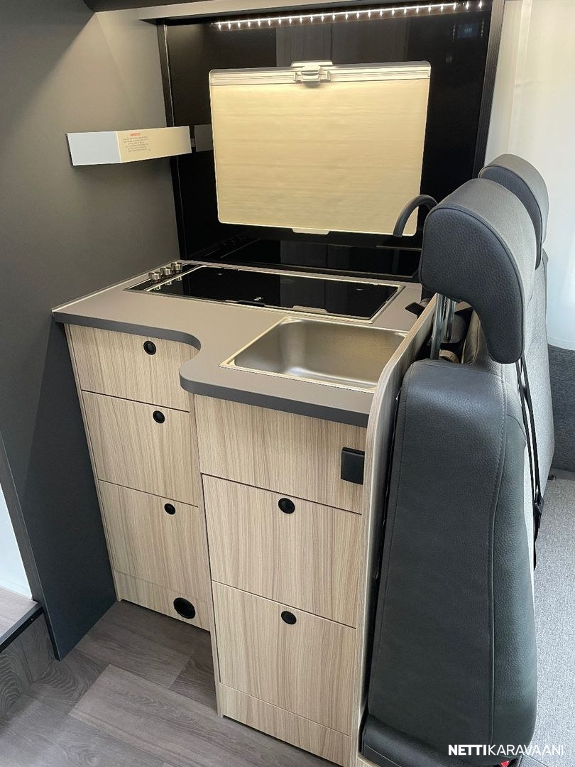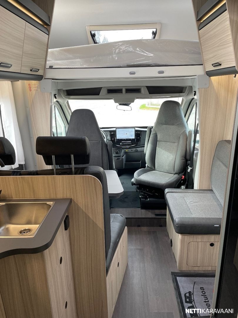 LÄMMITYS Truma Combi 6E. Sähköinen lattialämmitys Eristetty ja lämmitetty harmaavesisäiliö. Lämmitetty tavaratila. ASUINOSA Alkovi sänky Panoraamaikkuna ohjaamon yläpuolelle Seitz S4 ikkunat Ikkunallinen ovi hyönteisverkolla Harmaavesisäiliön sähköinen tyhjennys DC/DC konvertteri (latausvahvistin) Isofix Liesi kolmella polttimella TV-teline Ilmastoinnin,antennin ja aurinkopaneelin asennusvalmius **Camper Premium Pack High level ajovalot Sumuvalot Autonvärinen puskuri.