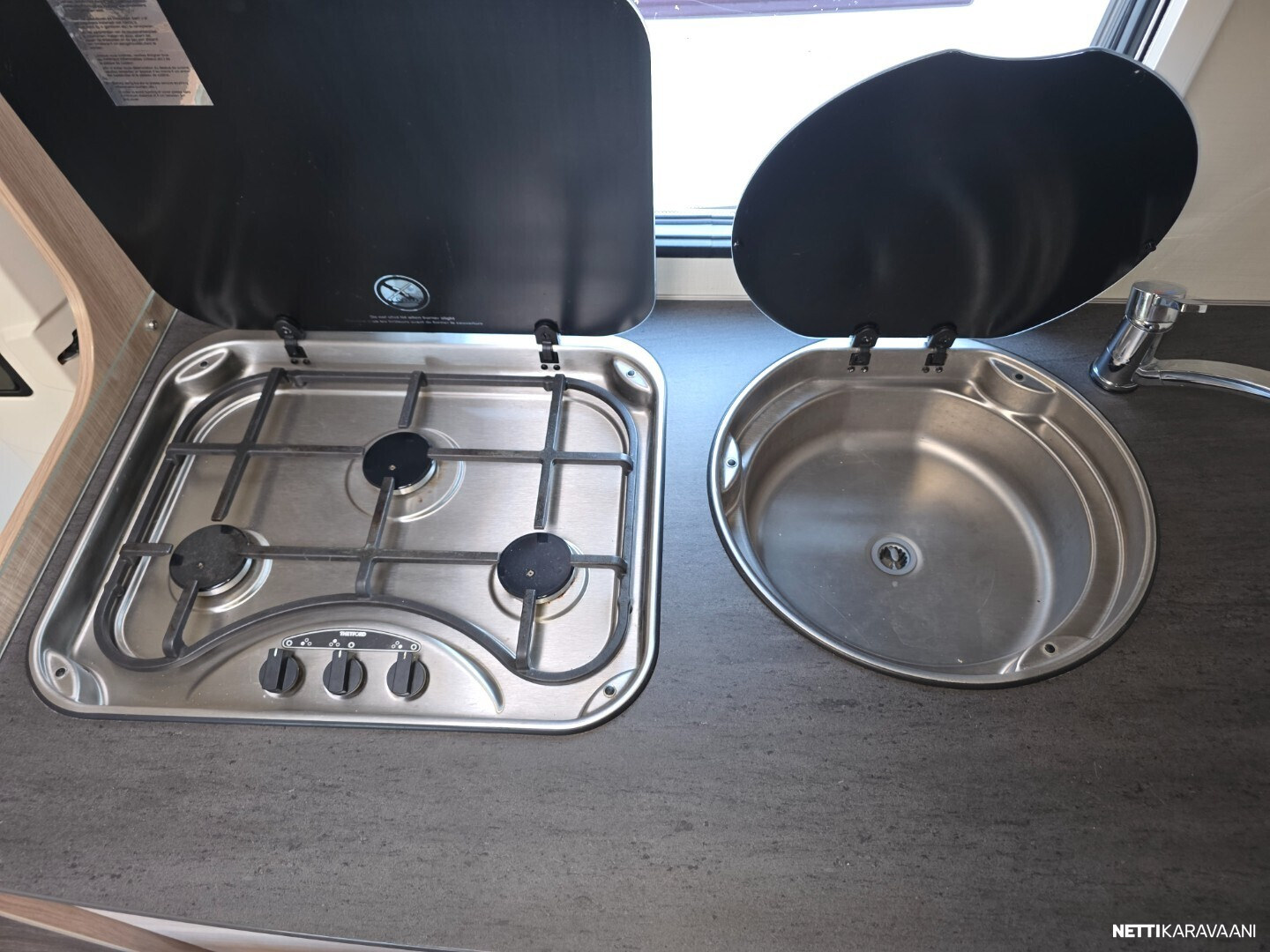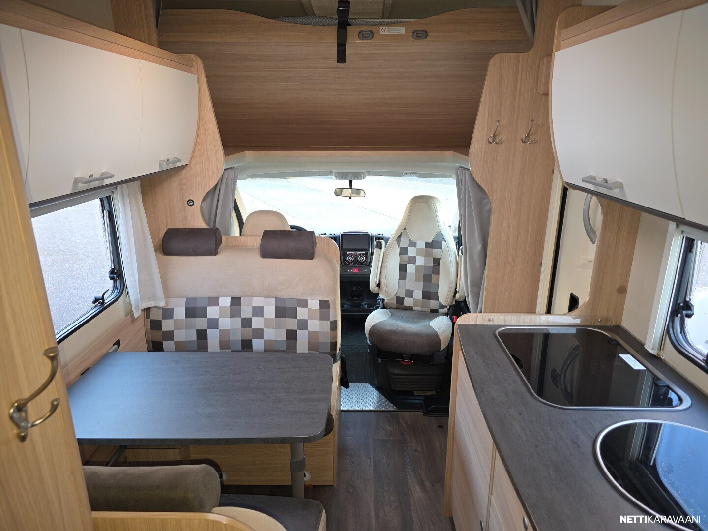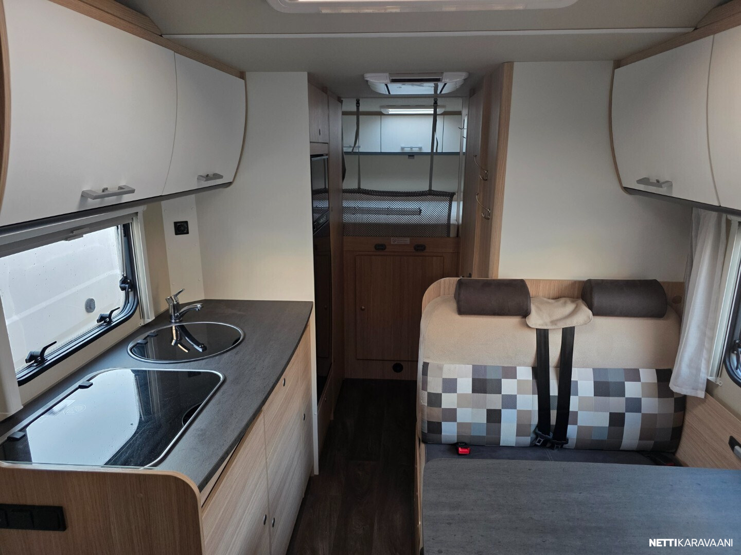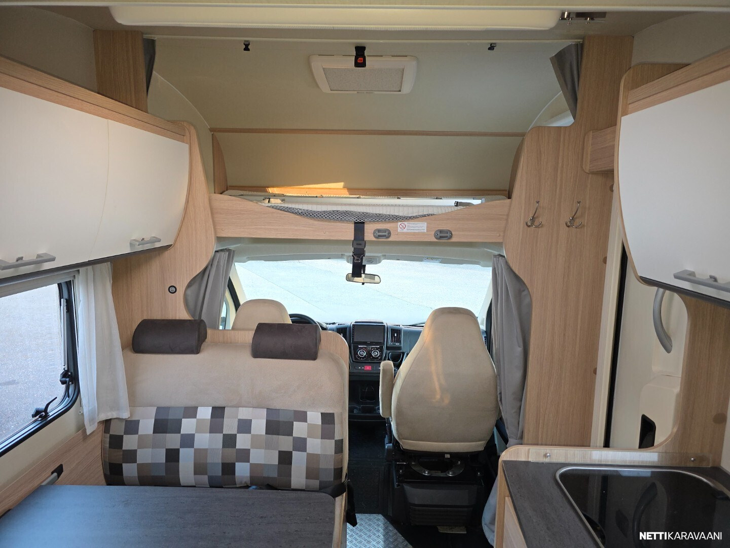 Vähän ajettu kuuden hengen alkovimalli henkilöautokortilla ja isolla takatallilla yksityiskäytöstä