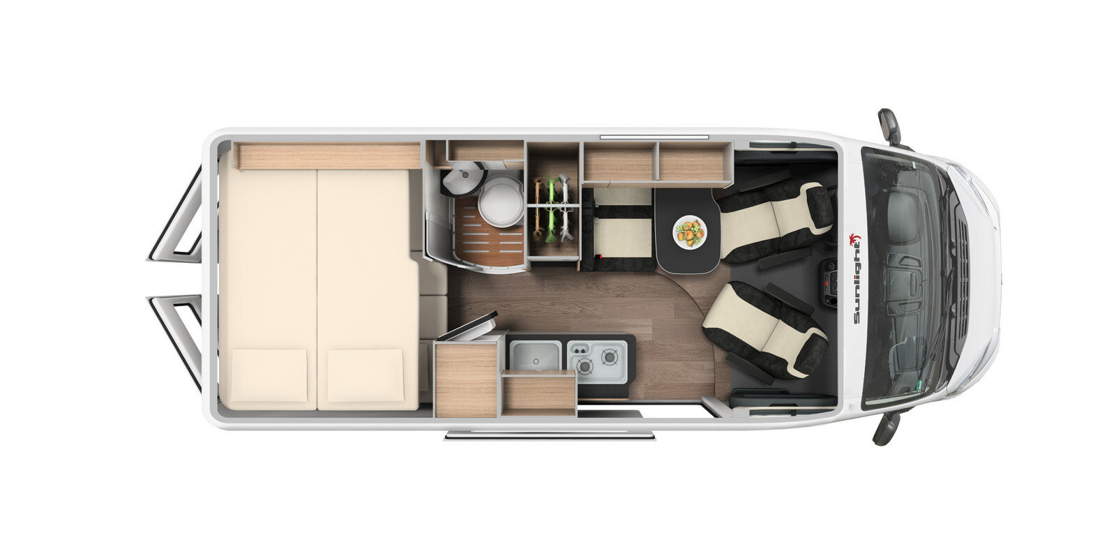 Syyskuussa tuleva vain 5,99m pitkä kerrosvuoteinen retkeilyauto.